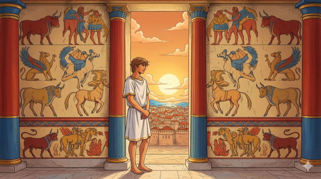 L’histoire reprend le parcours du jeune homme dans un contexte plausible de l’époque mycénienne (entre 1600 et 1200 avant notre ère).